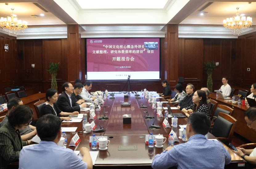 重大课题攻关项目首席专家朱一凡向评审组专家汇报了课题整体设计及推进情况。她重点阐述了四个核心问题:中国文化核心概念的界定标准、外译史研究目标、多语种文献筛选方法及数据库建设路径。研究选取具有中华文明标识的核心概念,以多语典籍译本为素材,采用数字人文的方法,探究概念外译变迁的演变规律并构建智能数据库平台。项目分五个子课题推进,最终将产出《中国文化核心概念外译史论》的专著和智能数据库,助力提升中华文化外译研究。