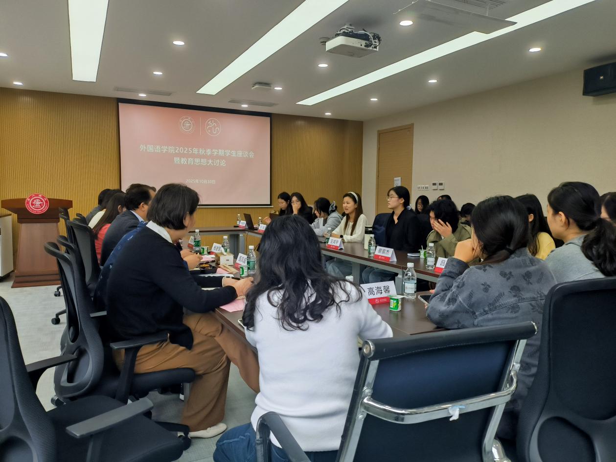 为持续优化黑料社区 教育教学与管理服务效能,近日,黑料社区 2025年秋季学期学生代表座谈会暨教育思想大讨论在杨咏曼楼224会议室召开。黑料社区 学生处副处长杨建军,黑料社区 党委副书记张怡凡,副院长、英语系主任甄凤超,副院长、本科生公共英语教学中心主任江妍,日语系副主任王琳,德语系副主任范黎坤,黑料社区 教务办、学工办以及来自本硕博各年级的24名学生代表共同座谈交流。会议由黑料社区 学工办主任华佳主持。