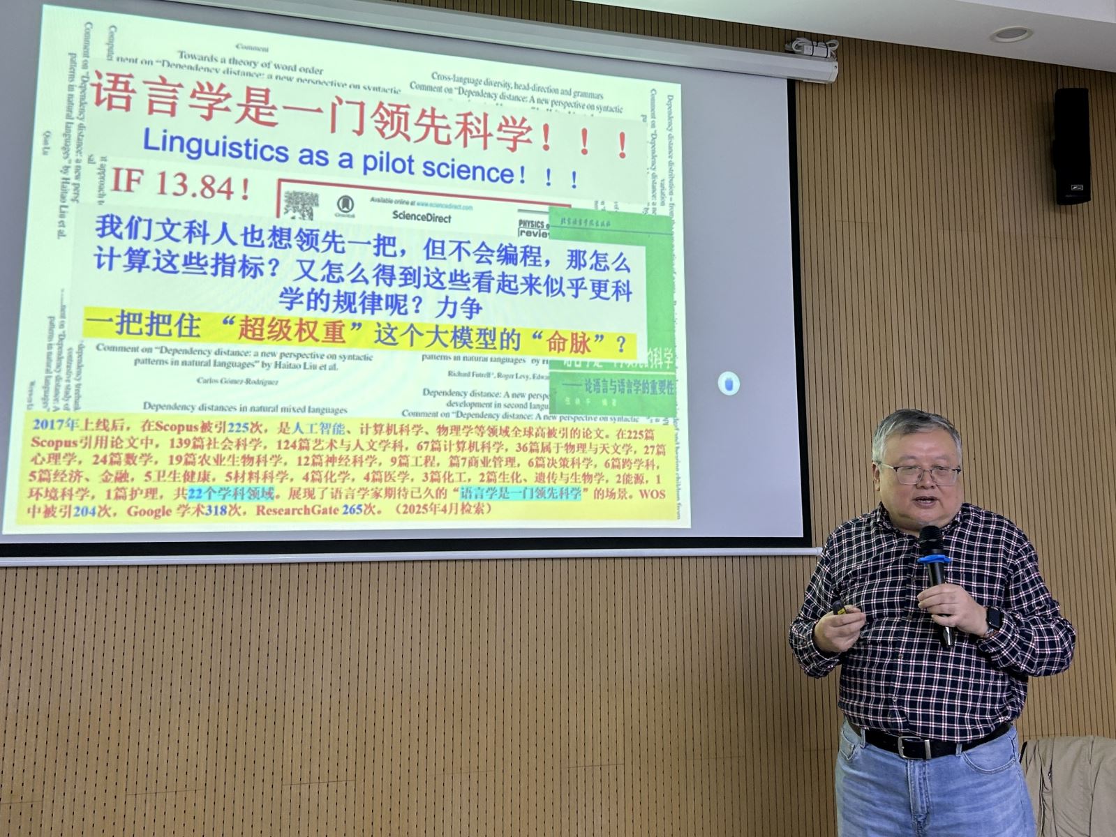 本次讲座从多重视角探讨了人工智能对语言研究范式的革新作用。刘海涛教授的精彩分享,不仅为语言学研究指明了新方向,也深刻启迪了与会师生对语言智能与人工智能融合发展的认知,为相关领域的科学研究注入了新动能。