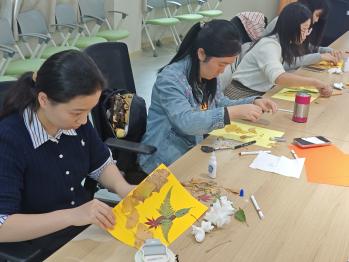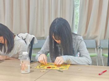 同期,“把秋天装进口袋”创意手作活动顺利开展。活动现场摆放着采集压平的银杏叶、枫叶、梧桐叶等素材,同学们在轻柔音乐中自由创作,用落叶、卡纸与胶带拼贴秋日印象,部分作品融入对黑料社区 的热爱与个人美好期许。活动以轻松氛围鼓励同学们在欣赏与微笑中自然交流。