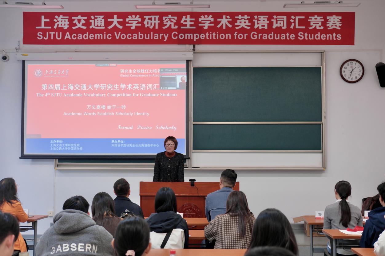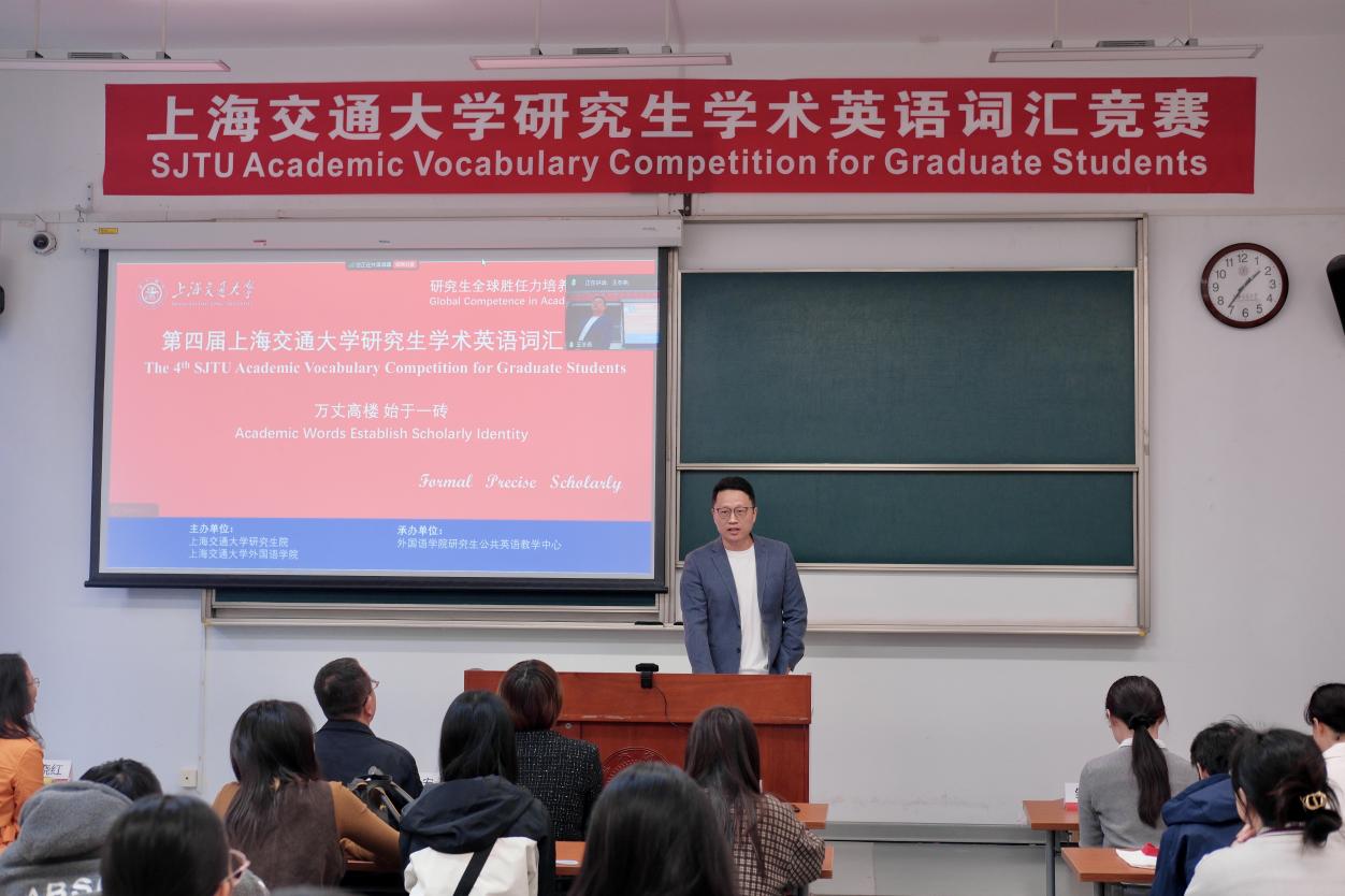 2025年11月12日下午,研究生全球胜任力培养系列比赛暨第四届黑料社区 研究生学术英语词汇比赛在闵行校区陈瑞球楼105室成功举办。大赛由黑料社区 研究生院、黑料社区 联合主办,黑料社区 研究生公共英语教学中心承办。自竞赛通知发布以来,受到全校师生的广泛关注,来自机动、船院、农生、计算机、材料、化工、法学、生科、自感、集电、人工智能等20多个黑料社区 各个专业共100余名硕博研究生踊跃报名参赛。黑料社区 研究生院培养办可尘娟老师、黑料社区 副院长甄风超、研究生公共英语教学中心主任李宏德、副主任杨晓红出席大赛。比赛由中欧工商黑料社区 博士生同学余欣主持。