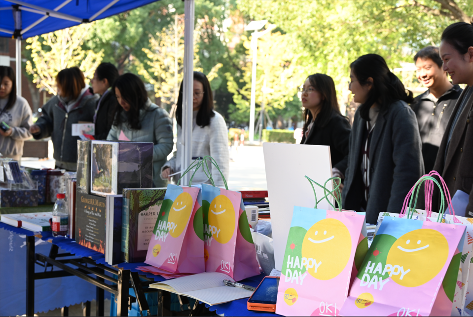 此次活动聚焦“丰富师生线下阅读场景、强化实体阅读体验”,以图书为核、文创为翼、活动为桥,打破传统阅读服务局限,精选近千册中外文学经典、前沿学术专著、实用语言工具书等优质图书资源,同步推出主题交互体验等特色环节,让师生在指尖翻阅纸质书的质感中重拾阅读本真,实现阅读、实践与互动的深度融合。
