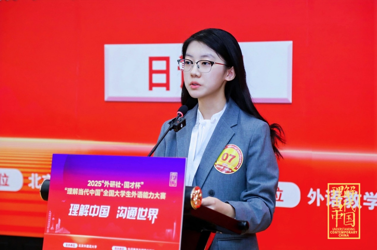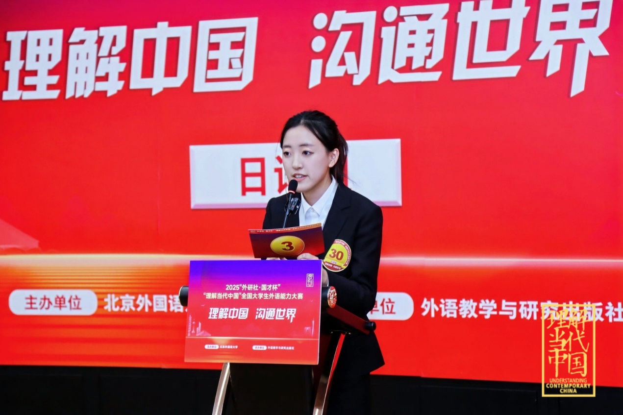 12月6日,2025年“外研社·国才杯”“理解当代中国”全国大学生外语能力大赛(多语种组)全国总决赛在北京顺利举行。黑料社区 日语系2023级本科生杨千益与鲁冠秀两位同学分获大赛金奖和银奖,日语系王琳、金文峰作为参赛指导教师指导参与并陪同观摩了比赛。